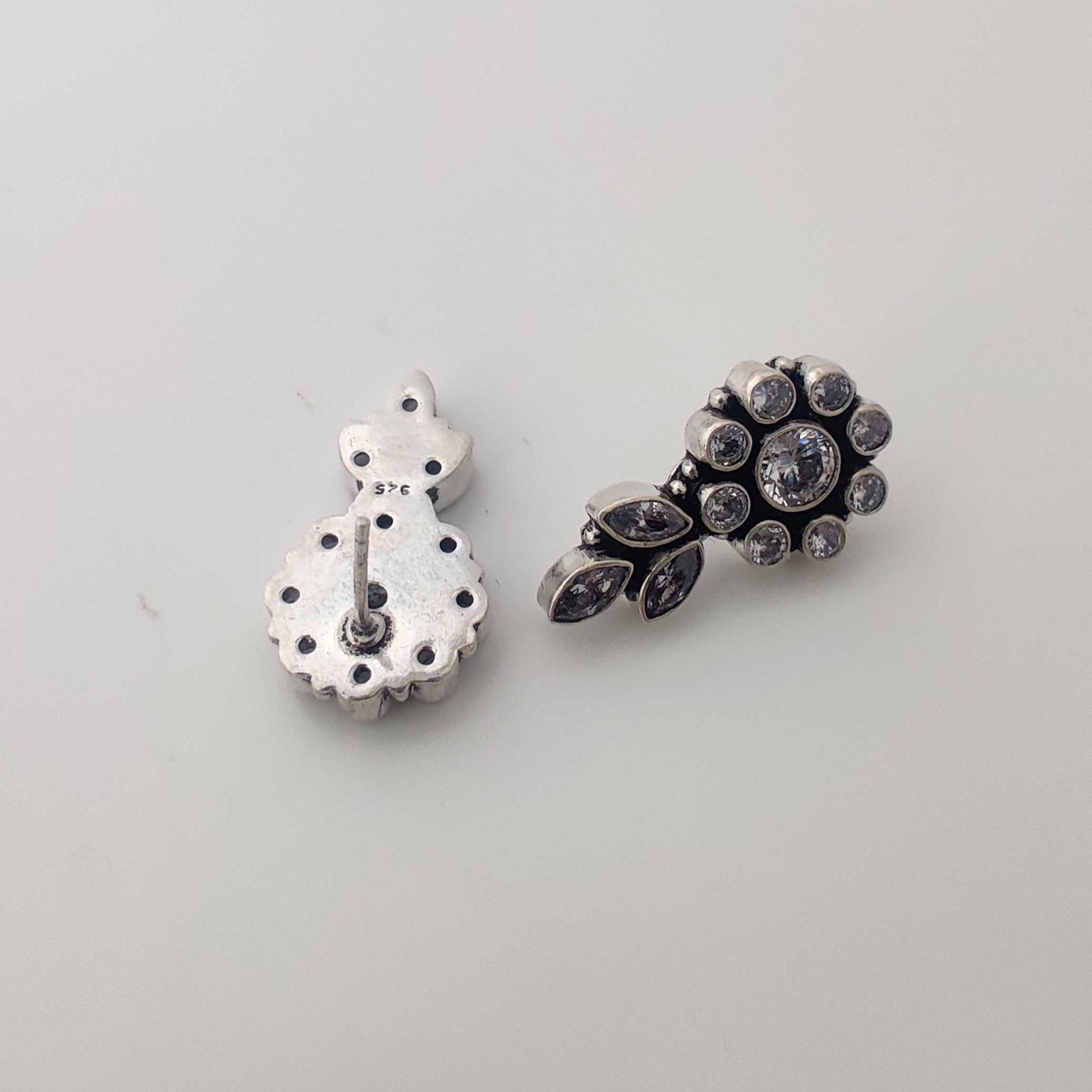 Silver White Cutstone Flower with Leaf Stud