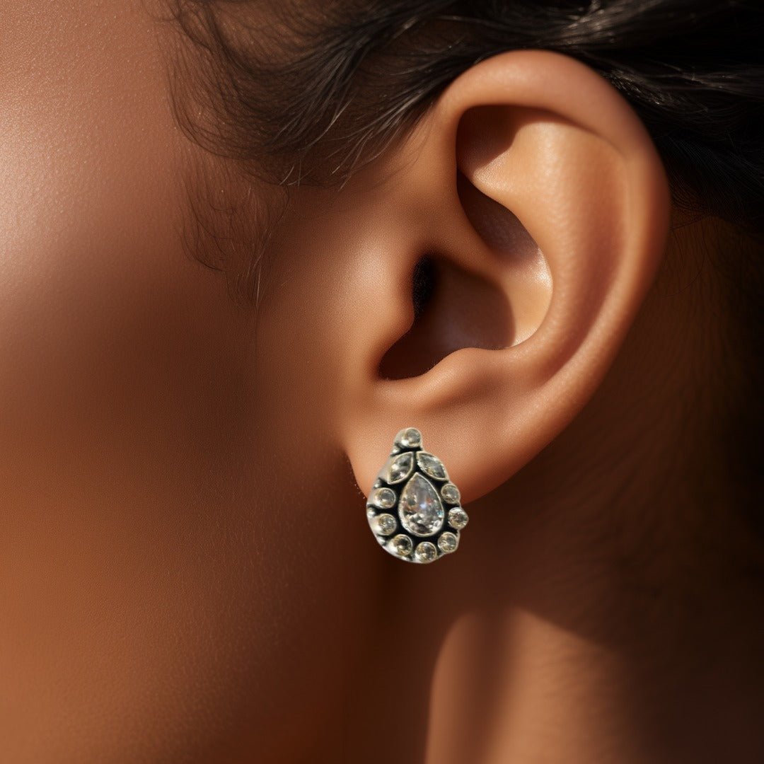 Style Tip: Elevate your style with these stunning teardrop cut stone studs, a must-have addition to any jewelry collection.