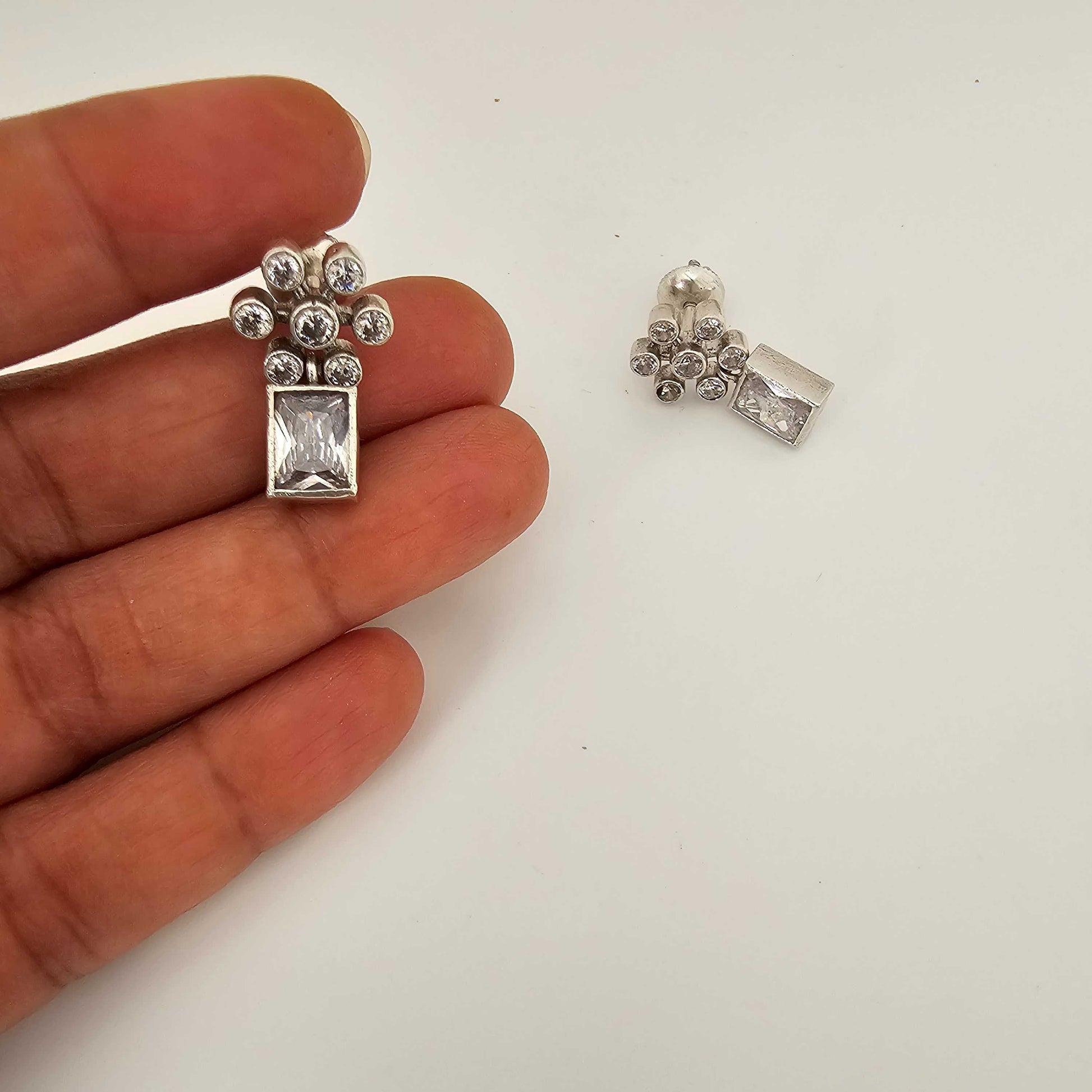 Description: Blending traditional Kundan style with a modern twist, these Silver Kundan Cutstone Studs are designed with sleek lines and a polished silver setting.