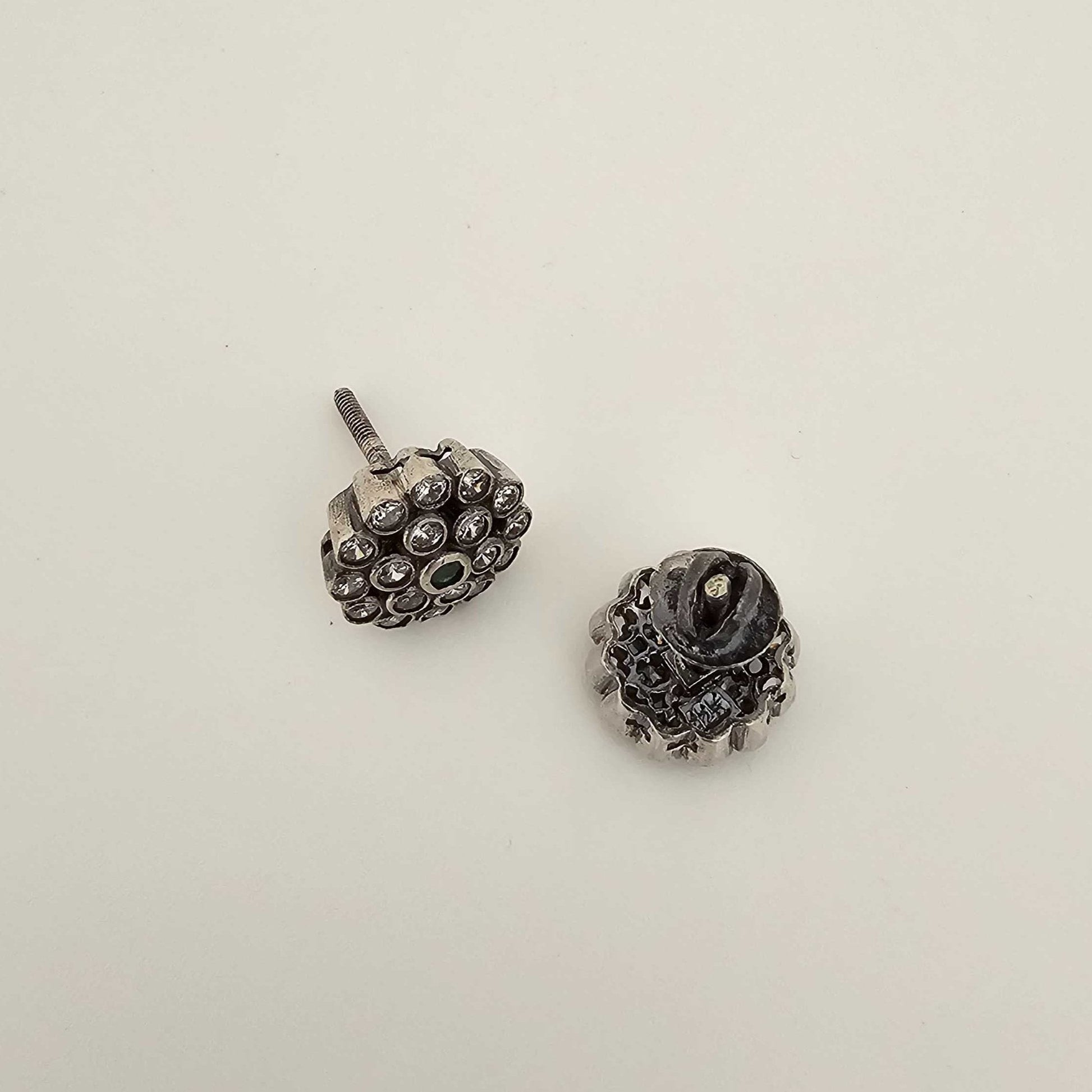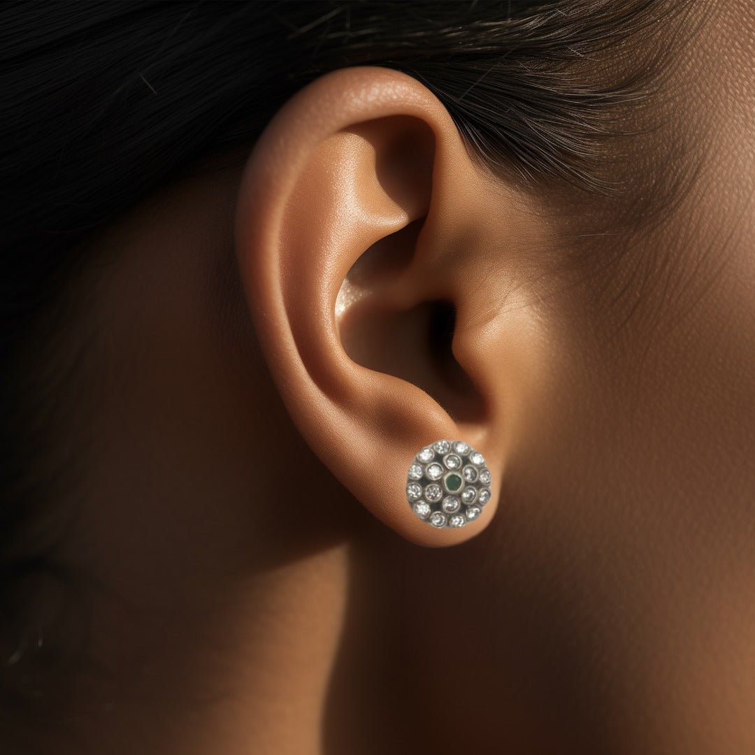 Description: Inspired by floral motifs, these Silver Kundan Cutstone Stud Earrings are adorned with cutstones arranged in a delicate flower pattern.