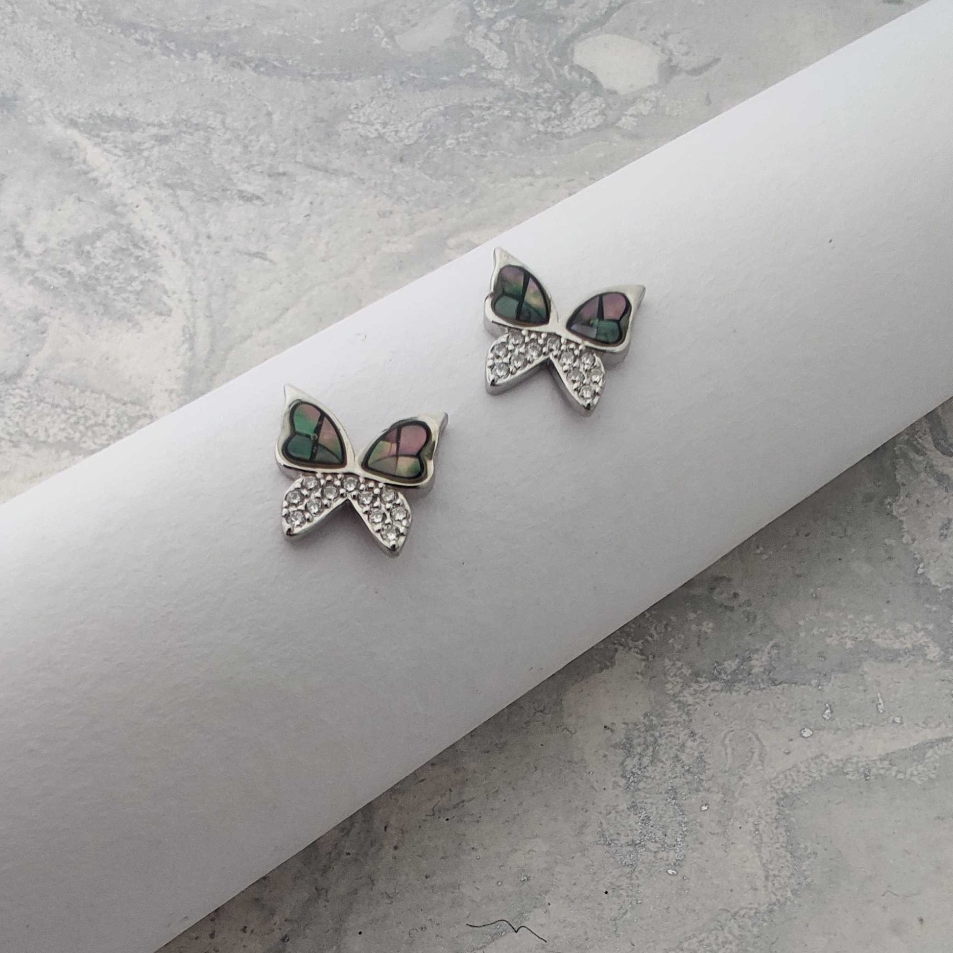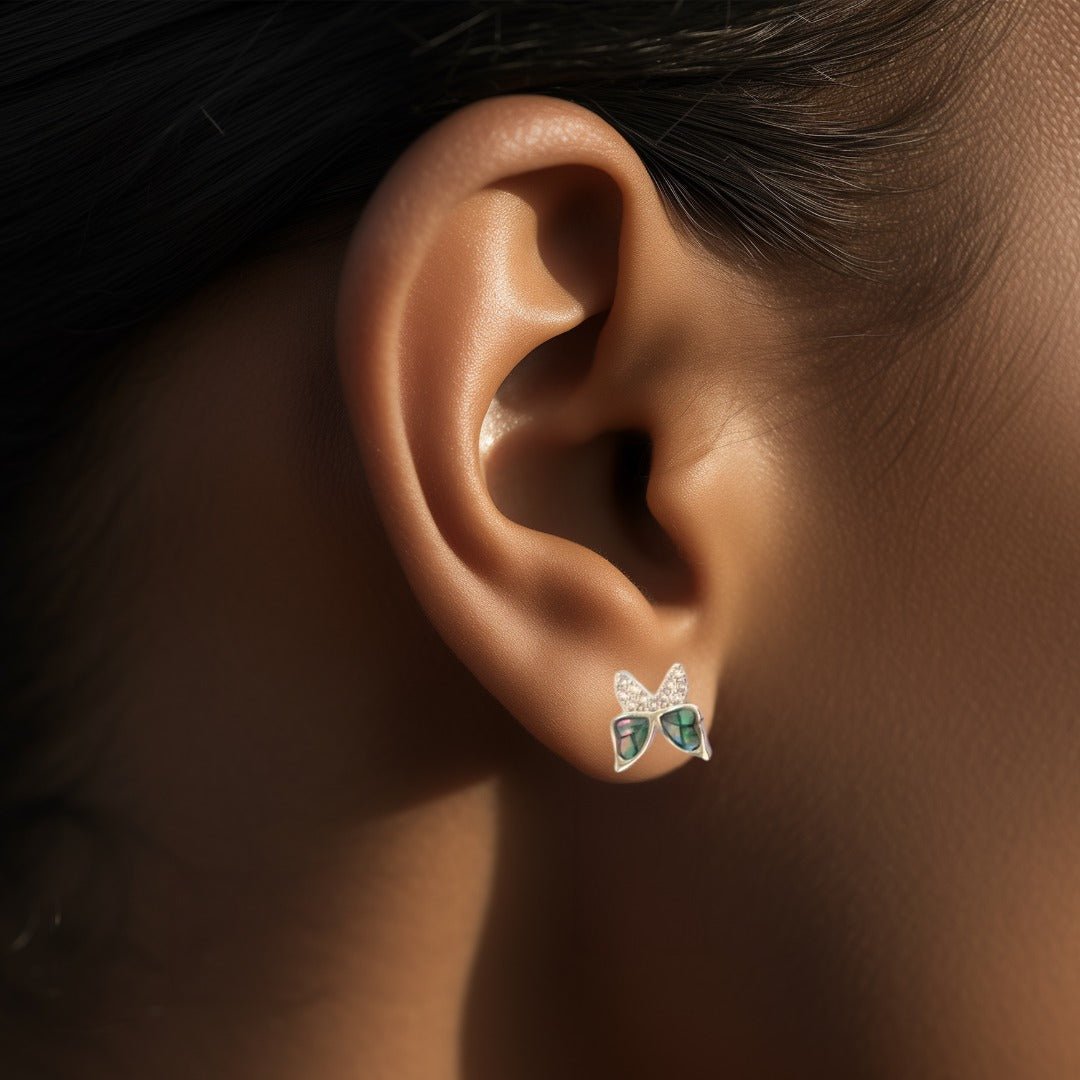 Description: These Elegant Korean Abalone Stud Earrings feature the captivating iridescence of abalone shell, shimmering with shades of green, blue, and pink.
