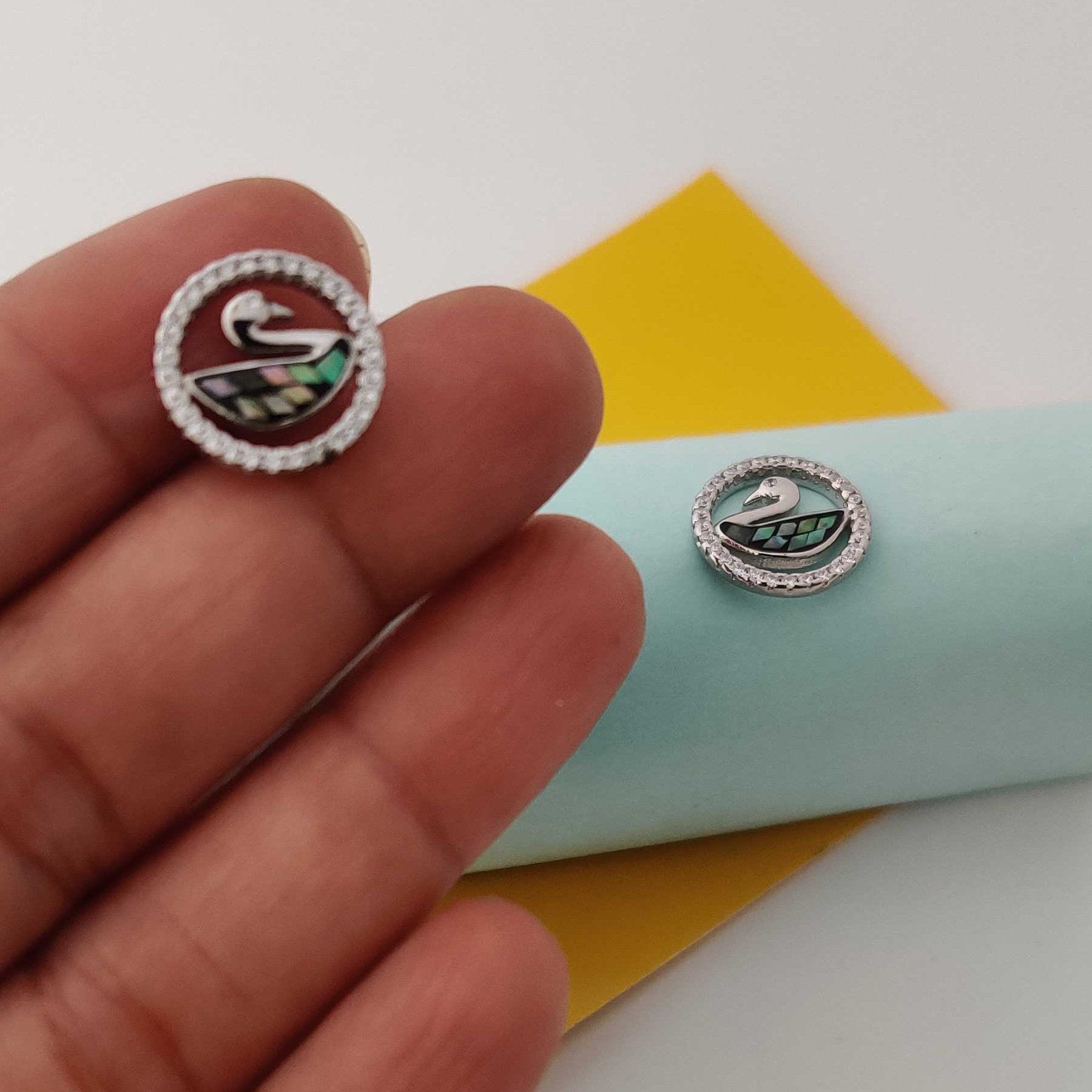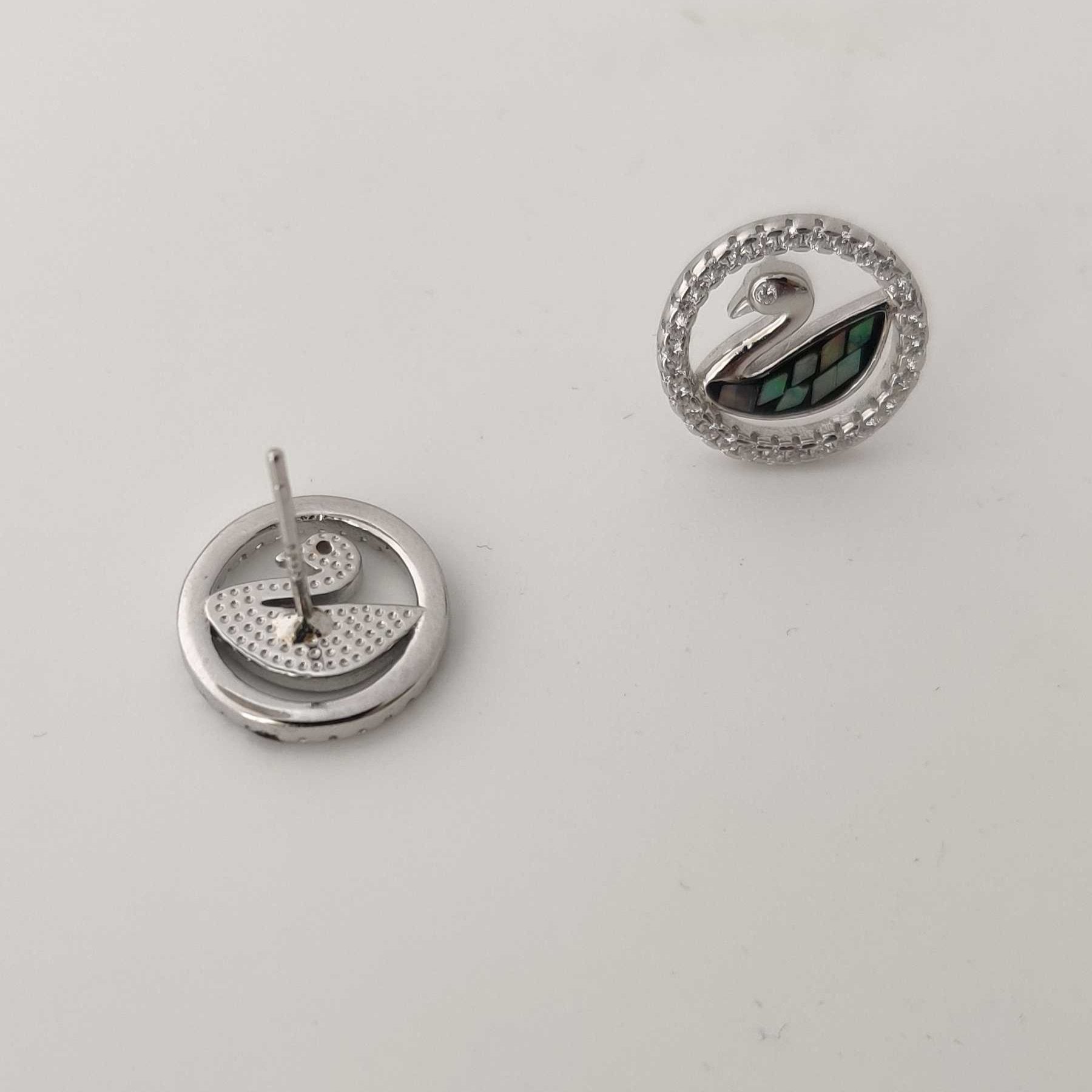 Silver Abalone SwanInCircle Stud