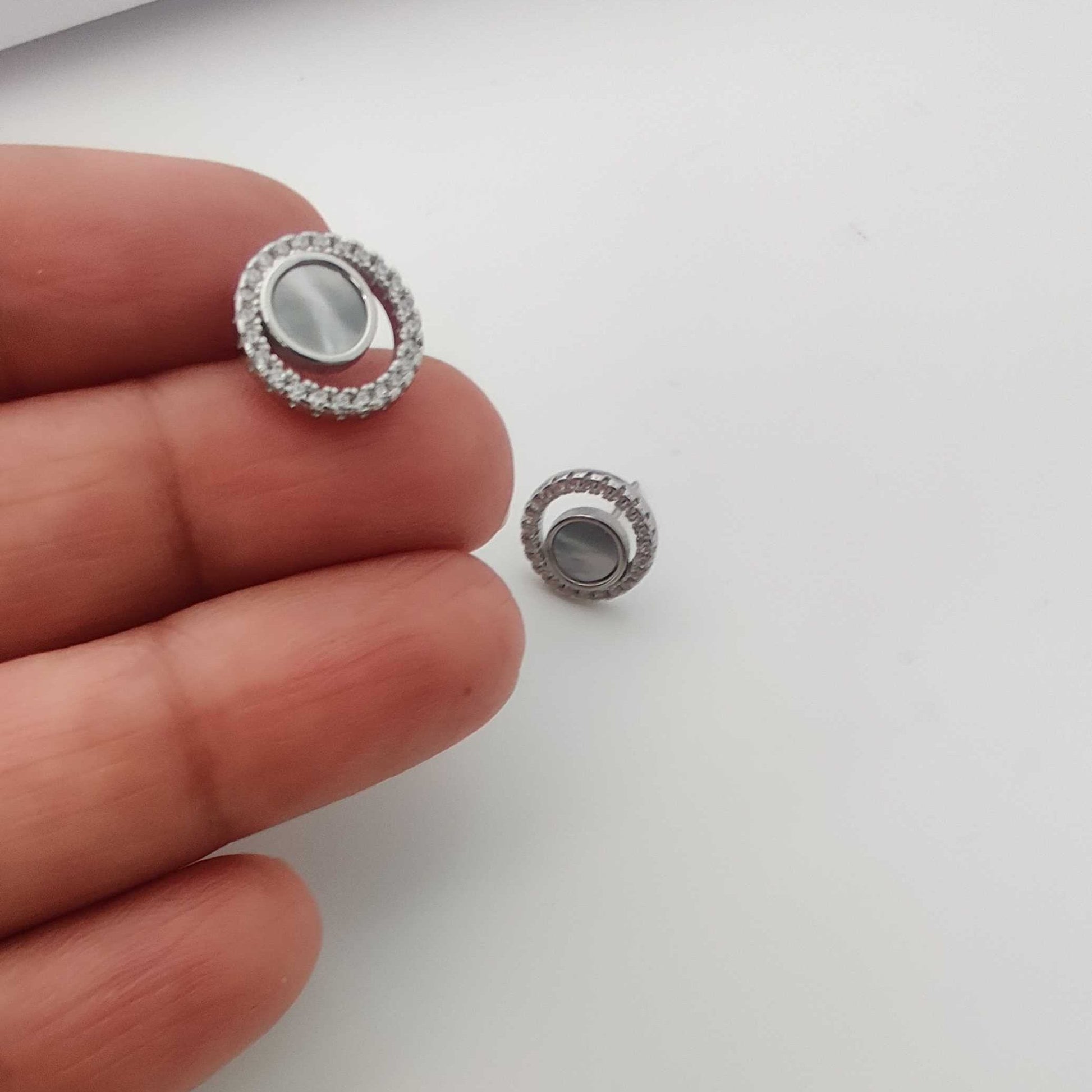 Description: Featuring a contemporary design, these modern Korean Mother of Pearl Studs add a fresh twist to a classic style.