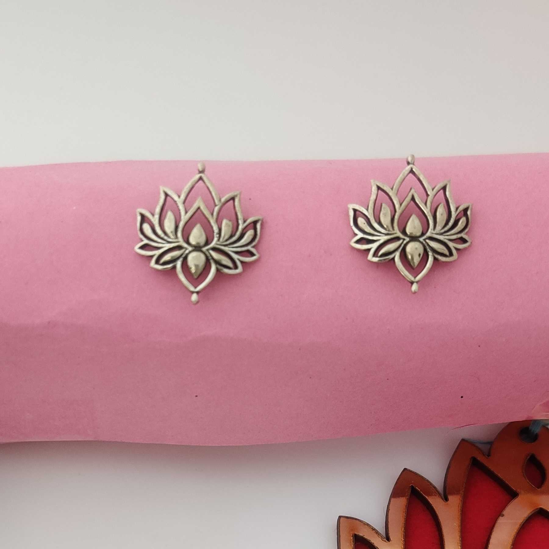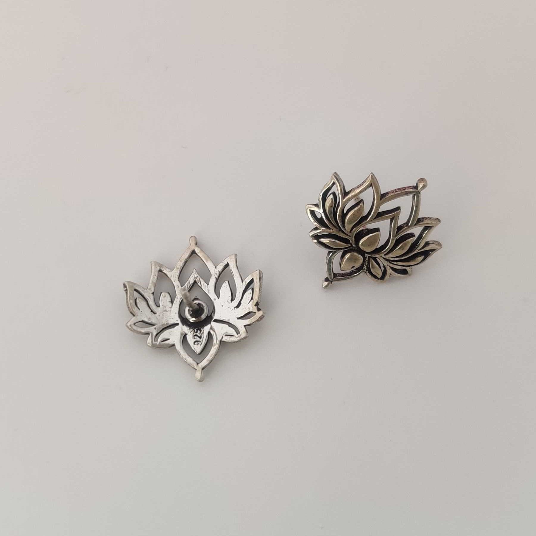 Description: These silver oxidized studs showcase intricate patterns that exude a vintage charm. The oxidized finish adds depth to the detailed design, highlighting every curve and contour with a rustic yet refined touch.