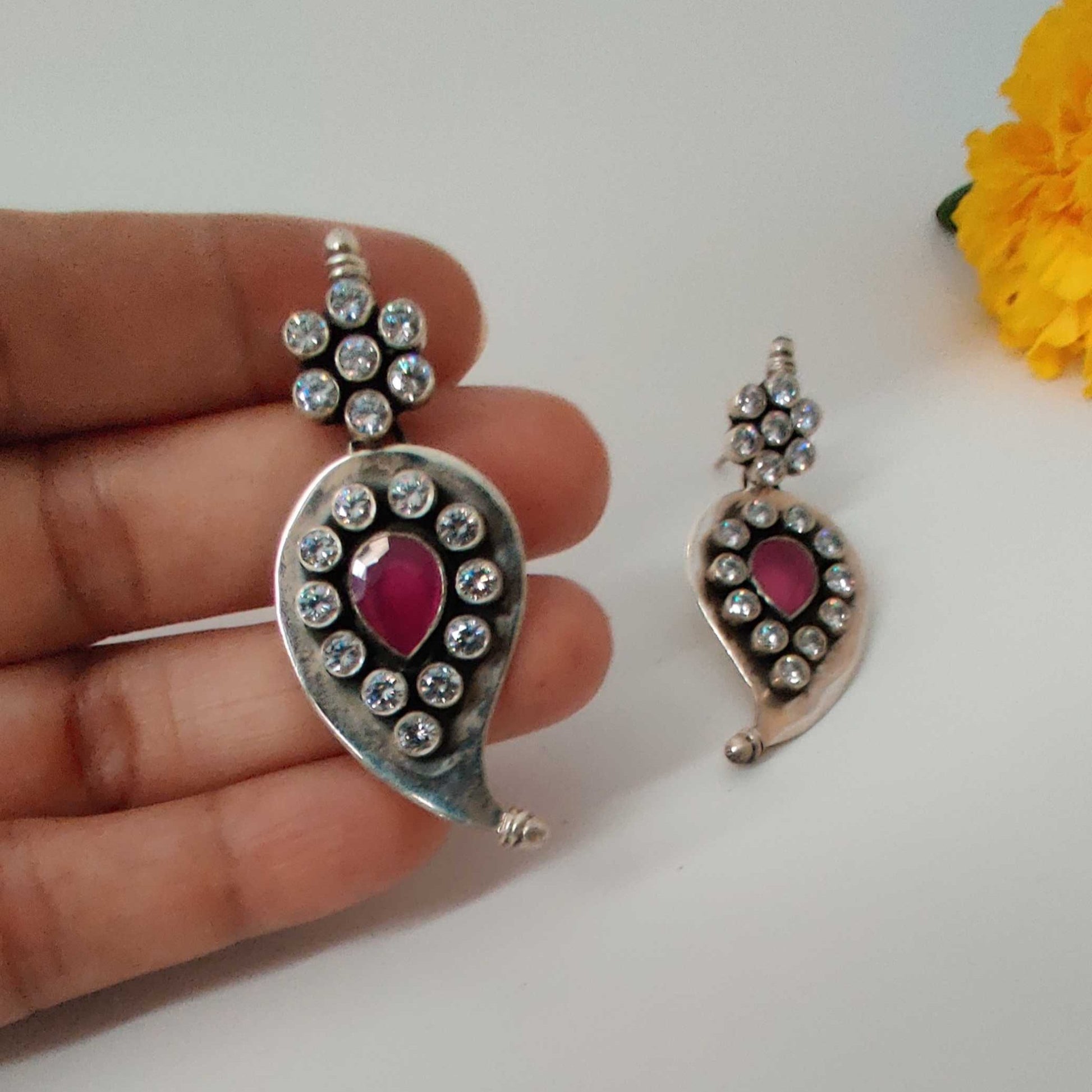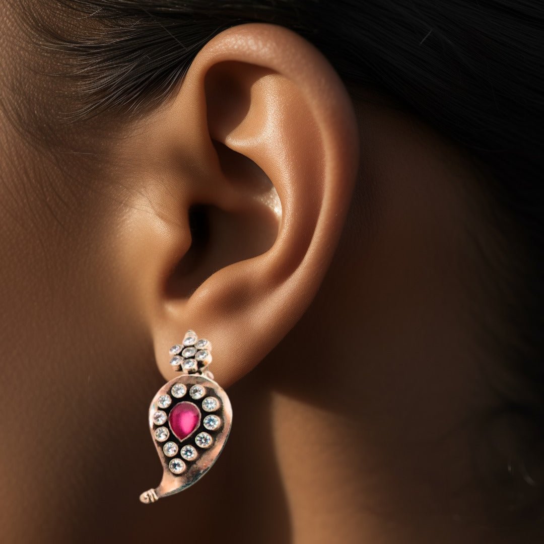 Description: These Radiant Mango Gem Earrings offer a fresh twist on traditional elegance. The cut stones gleam with vibrancy, making them a standout piece for any occasion.