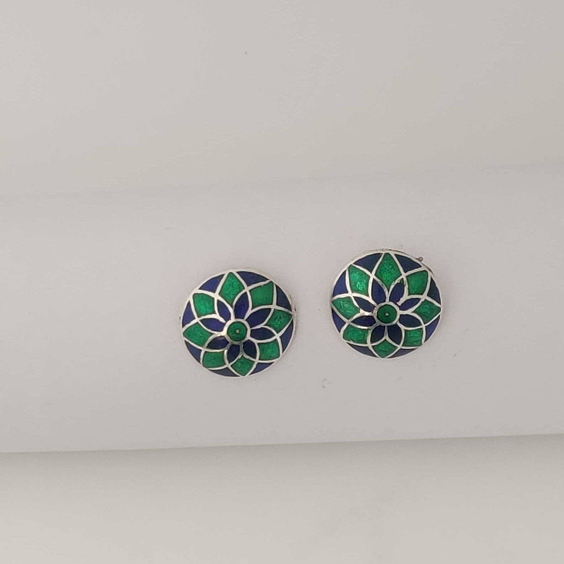 Silver Green Blue Meenakari Stud