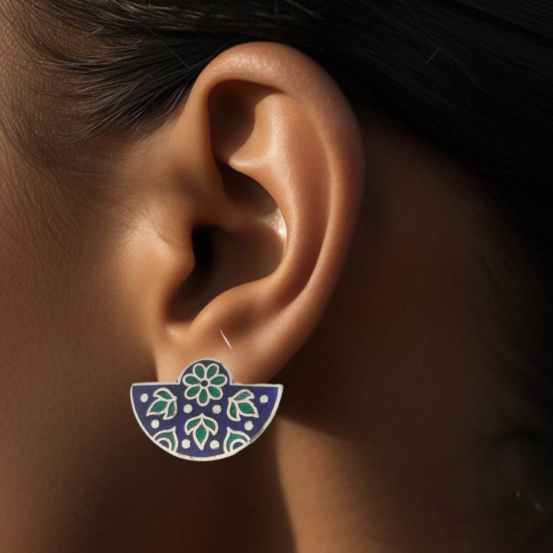 Description: Inspired by the rich cultural heritage of Rajasthan, these Meenakari Earrings are adorned with intricate hand enamel work in vibrant shades. Perfect for adding a traditional flair, they are an ideal choice for cultural celebrations and special events.