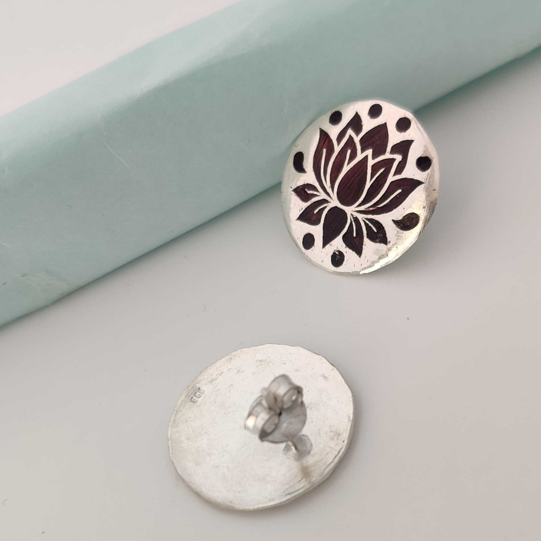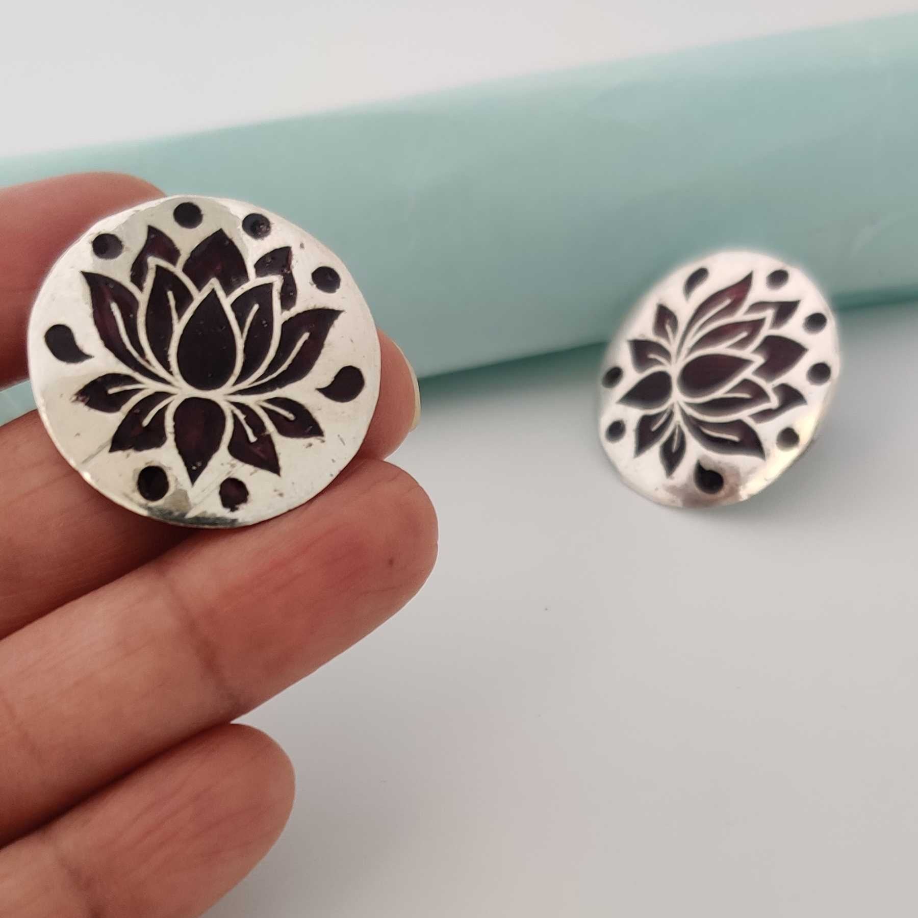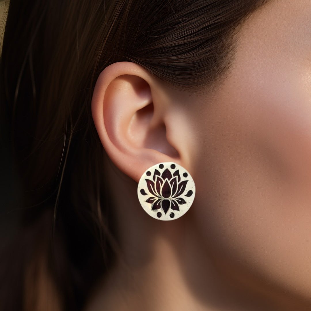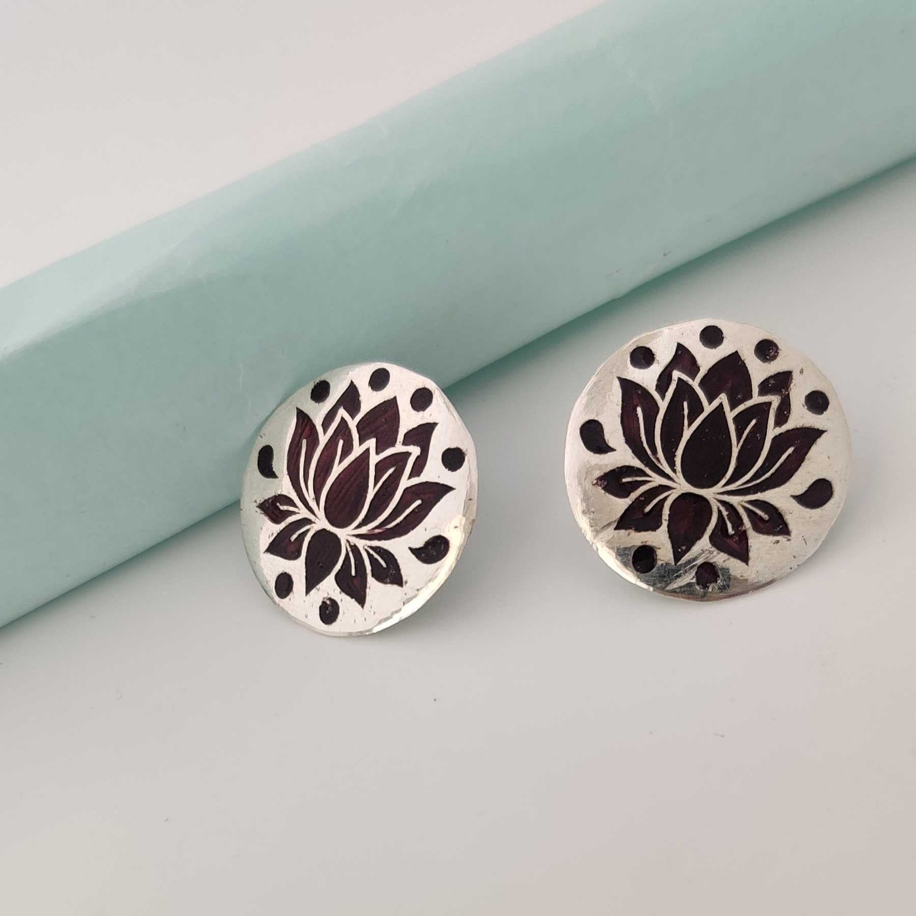 Silver Brown Lotus Meenakari Stud