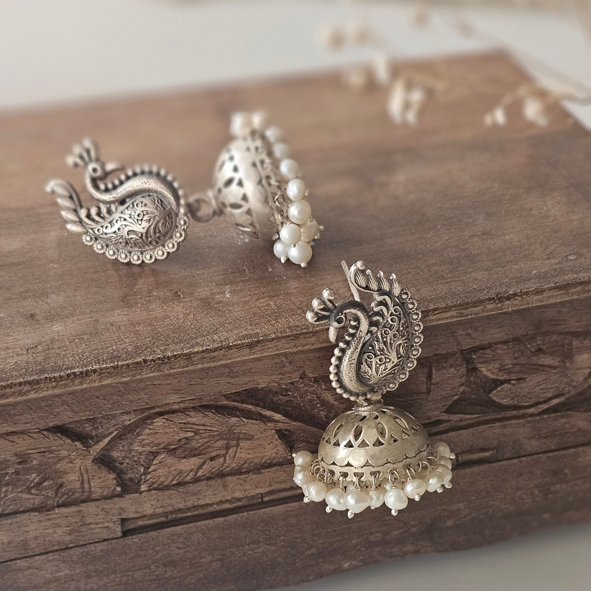 Description: Elegance meets tradition in our 925 pure silver fresh water Pearl Jhumkas. Handcrafted with intricate silverwork and adorned with delicate pearls, these earrings exude timeless beauty. The soft shimmer of pearls paired with the classic bell-shaped design creates a look that’s both regal and versatile.