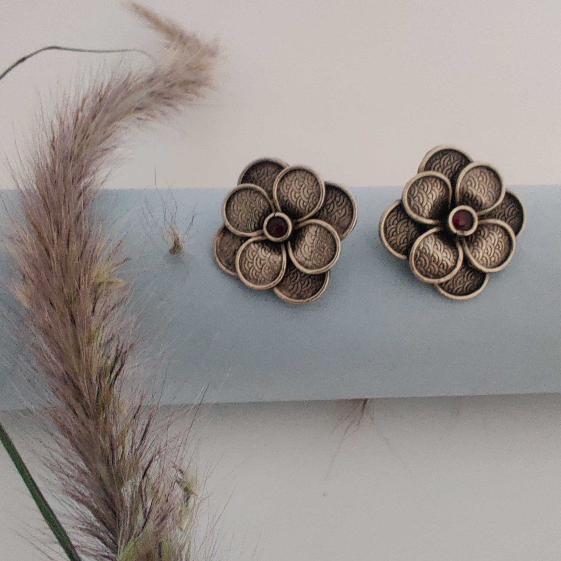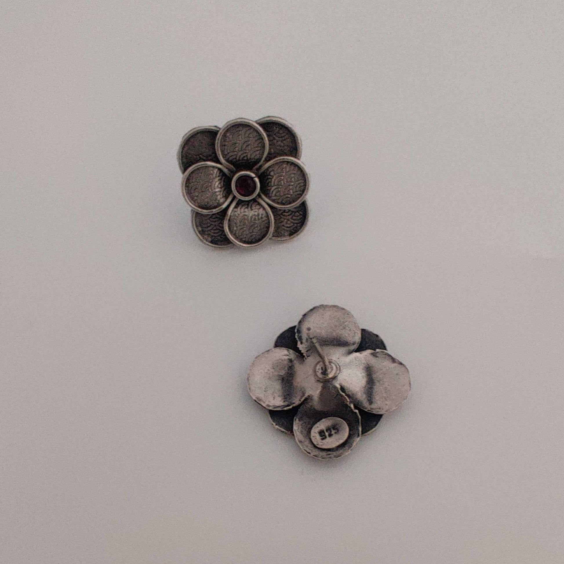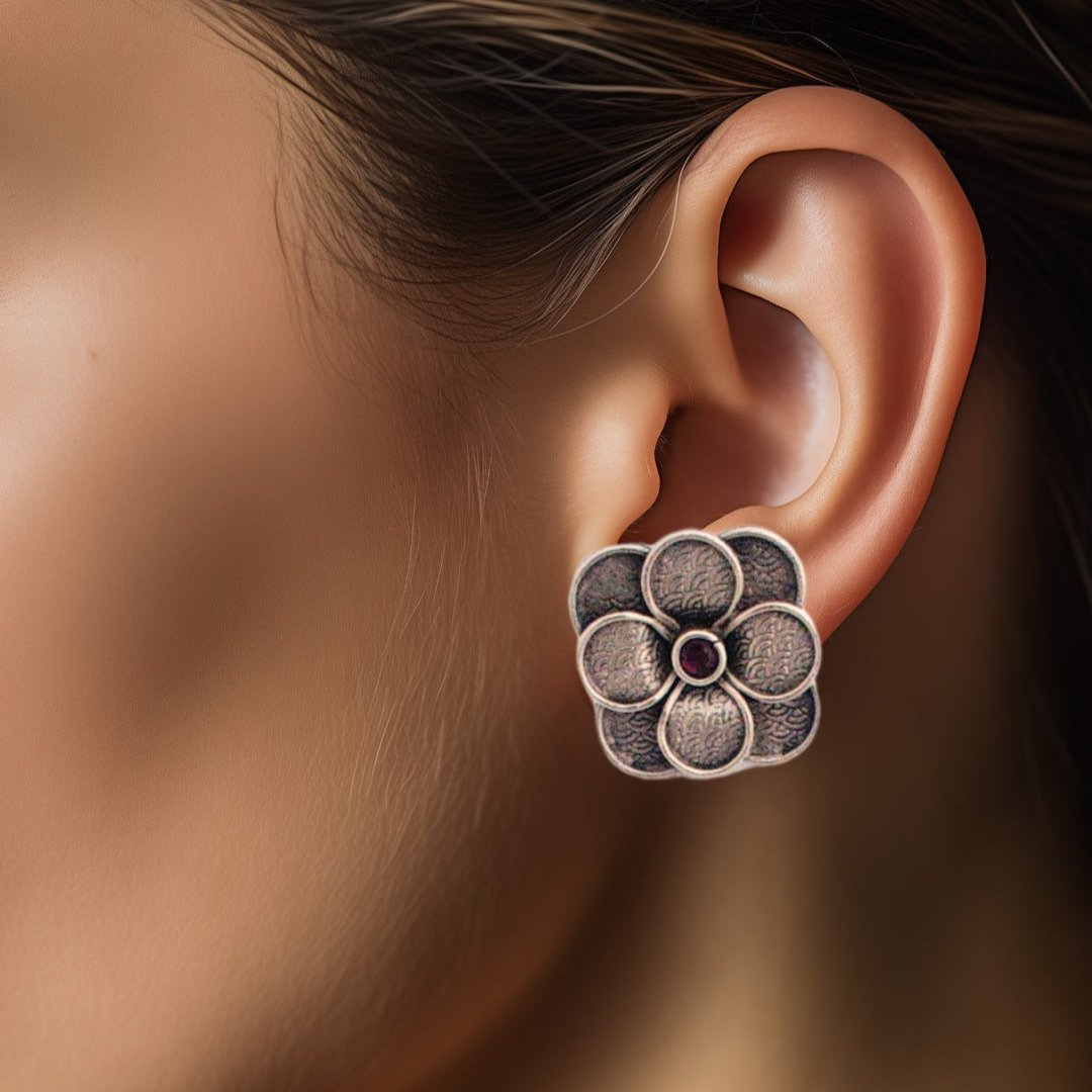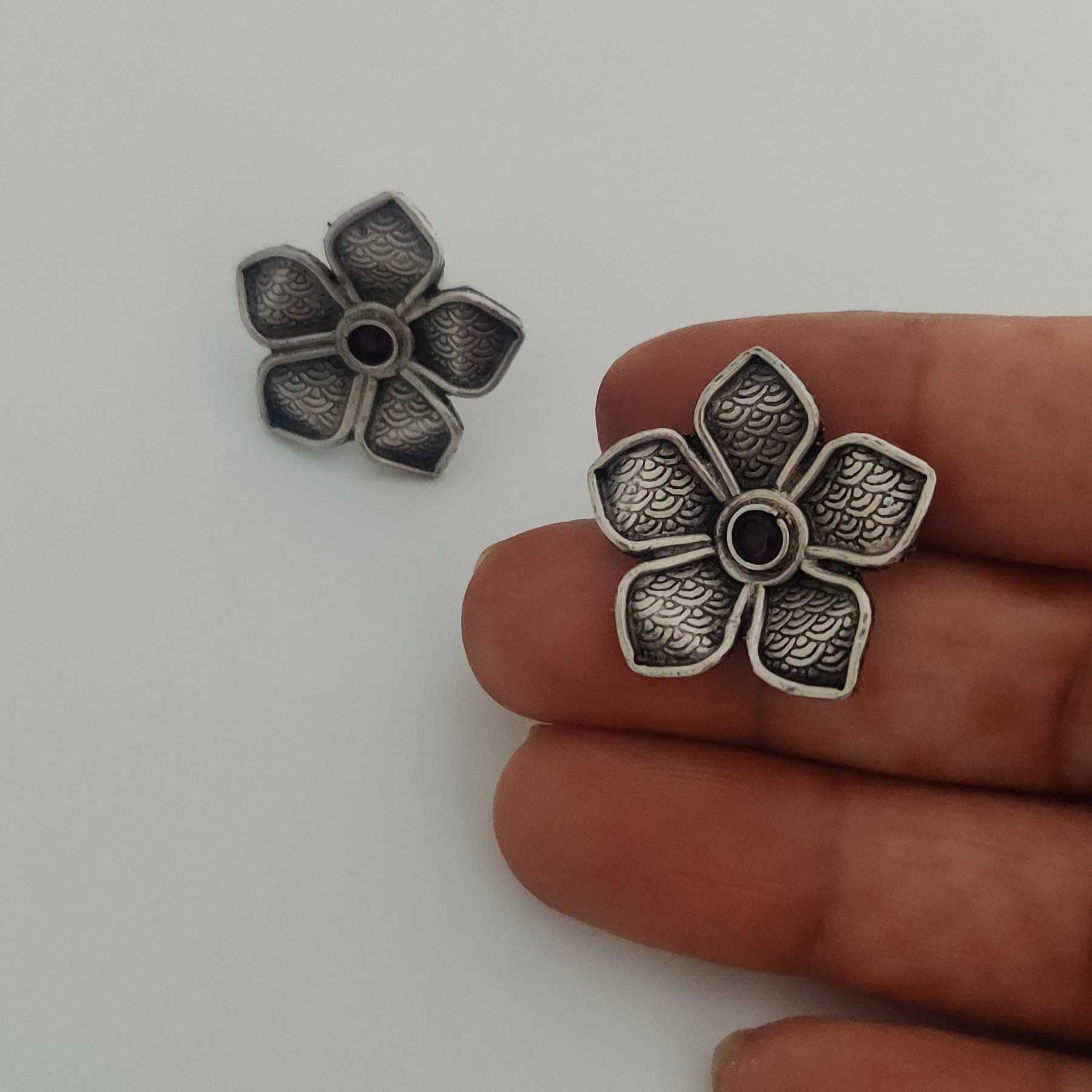 Description: The Charming Floral Petal Studs with Gem center are crafted with intricately arranged petals.