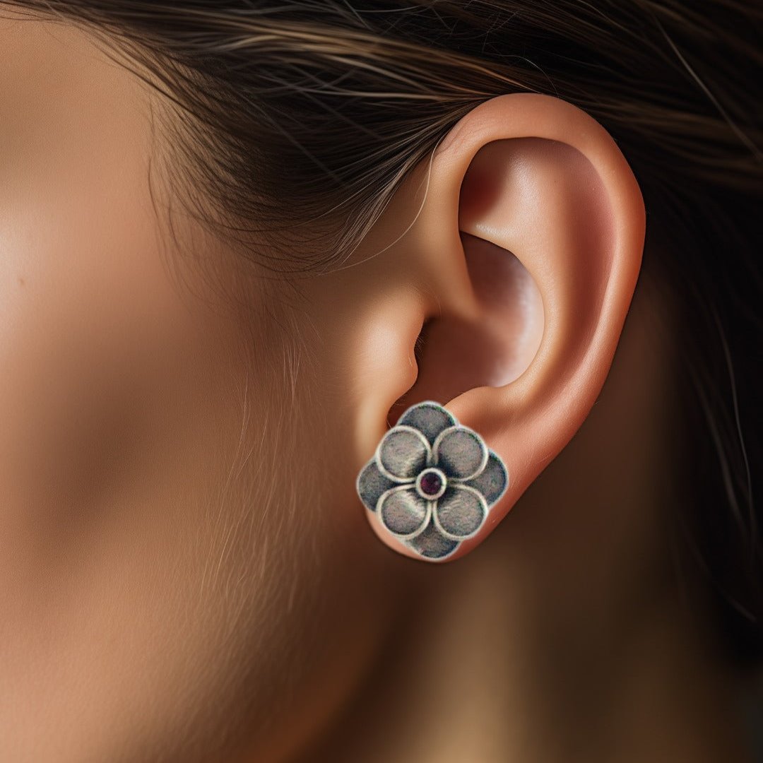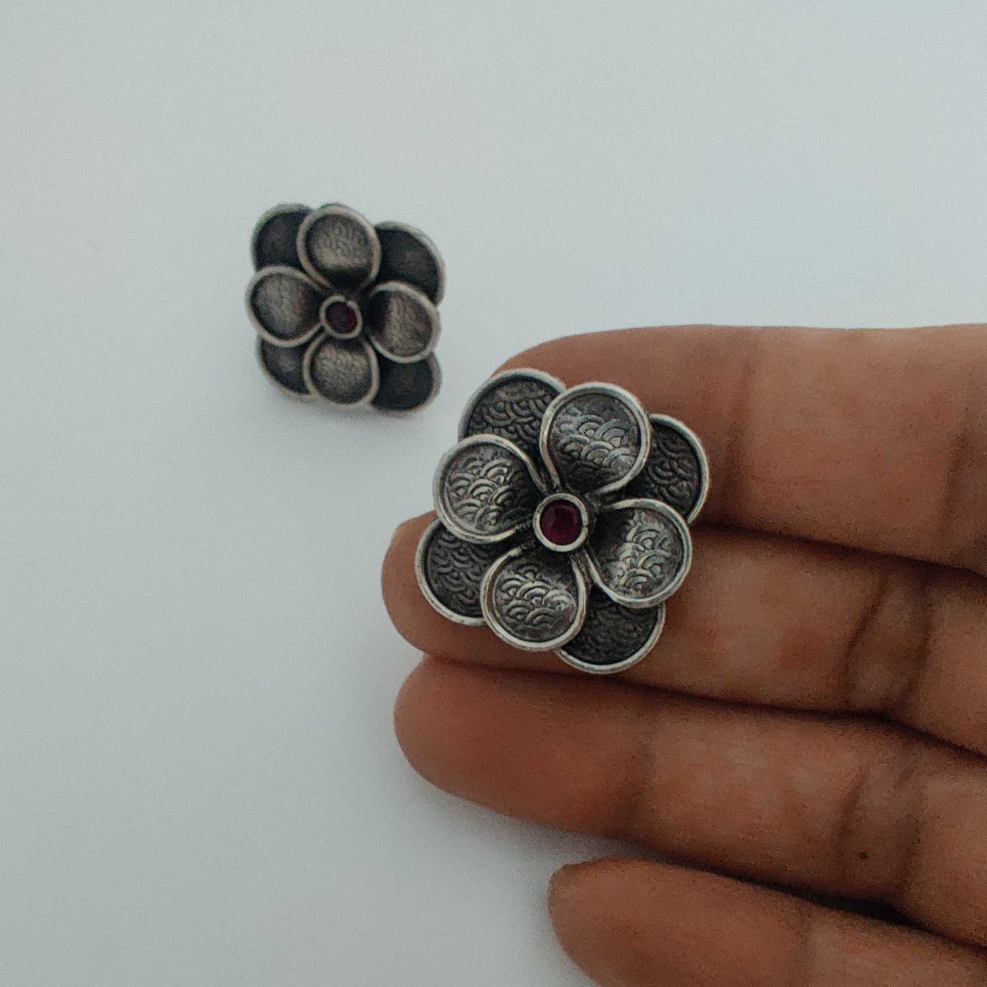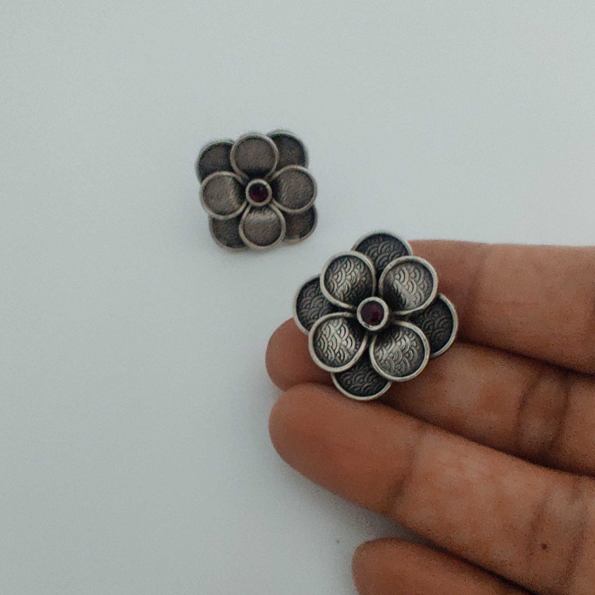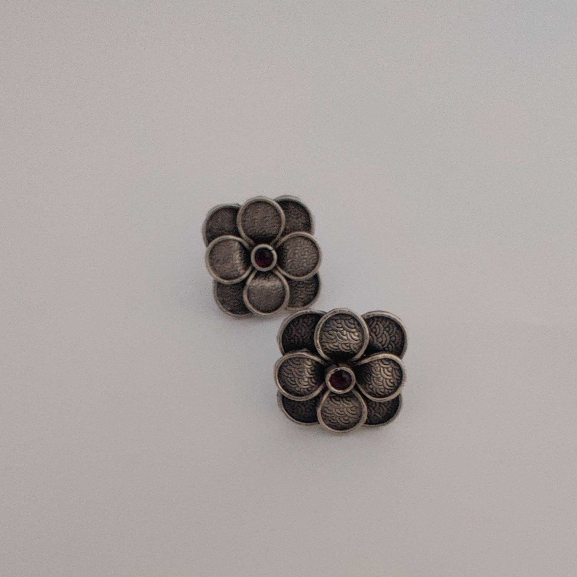 Description: The Charming Floral Petal Studs with gem center are crafted with intricately arranged petals.