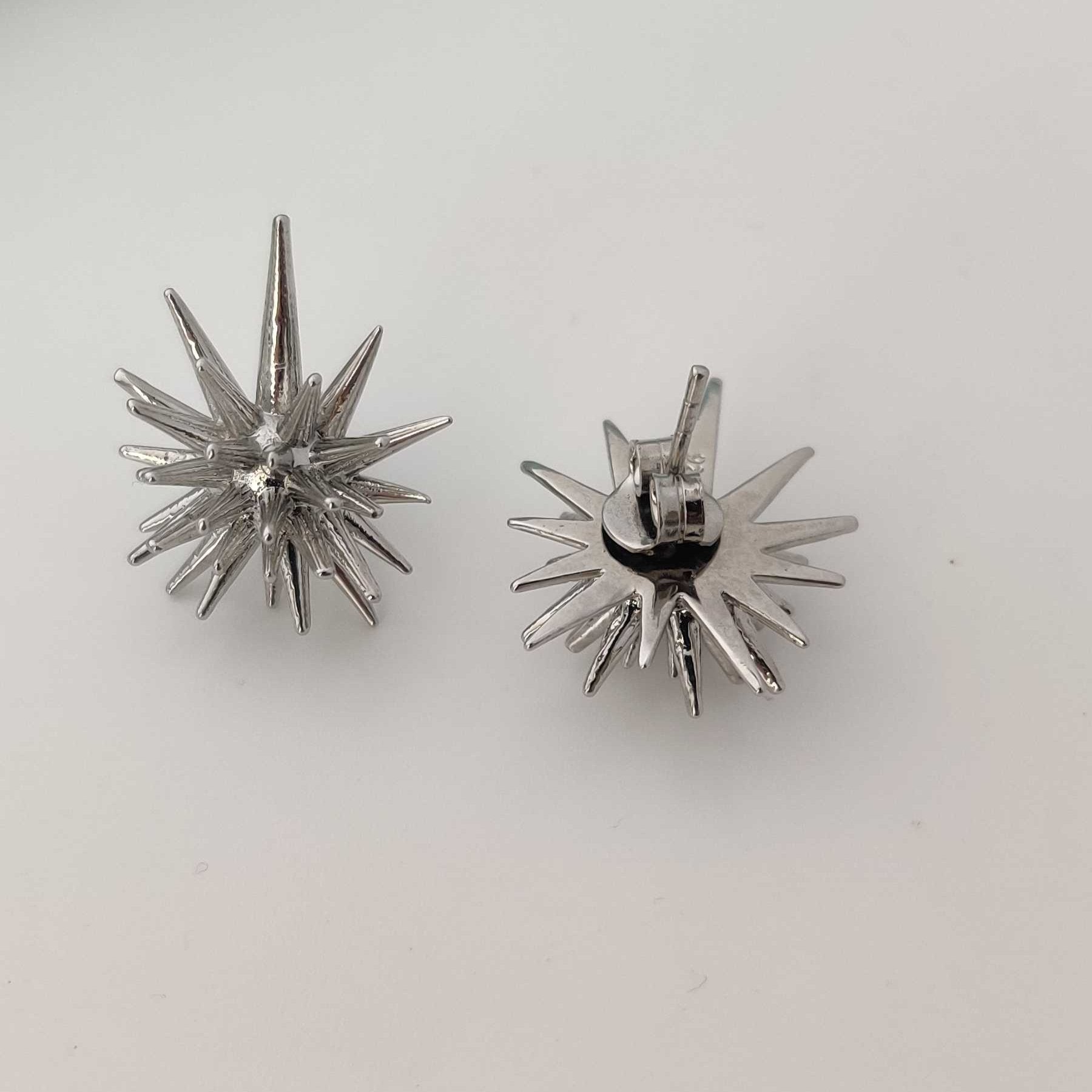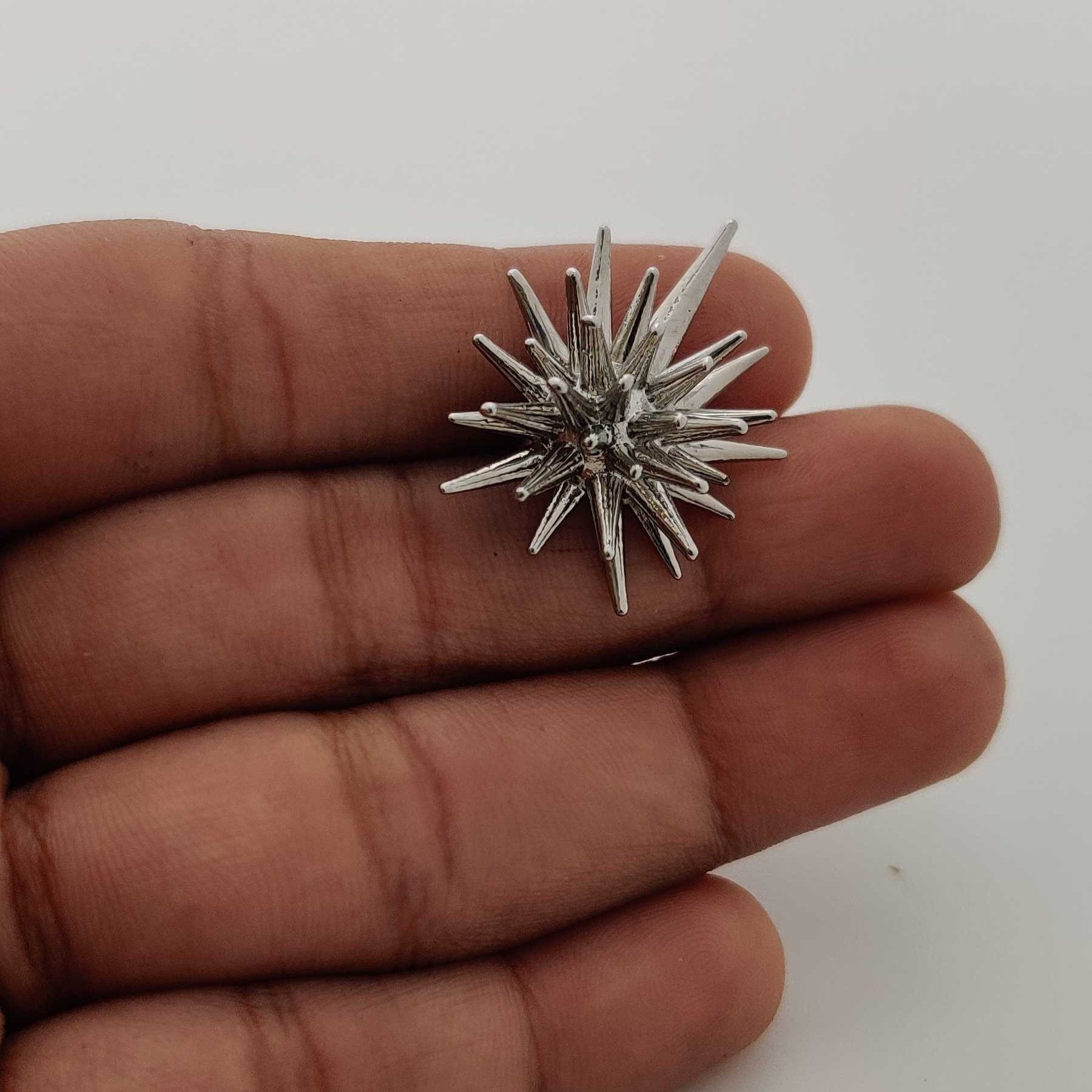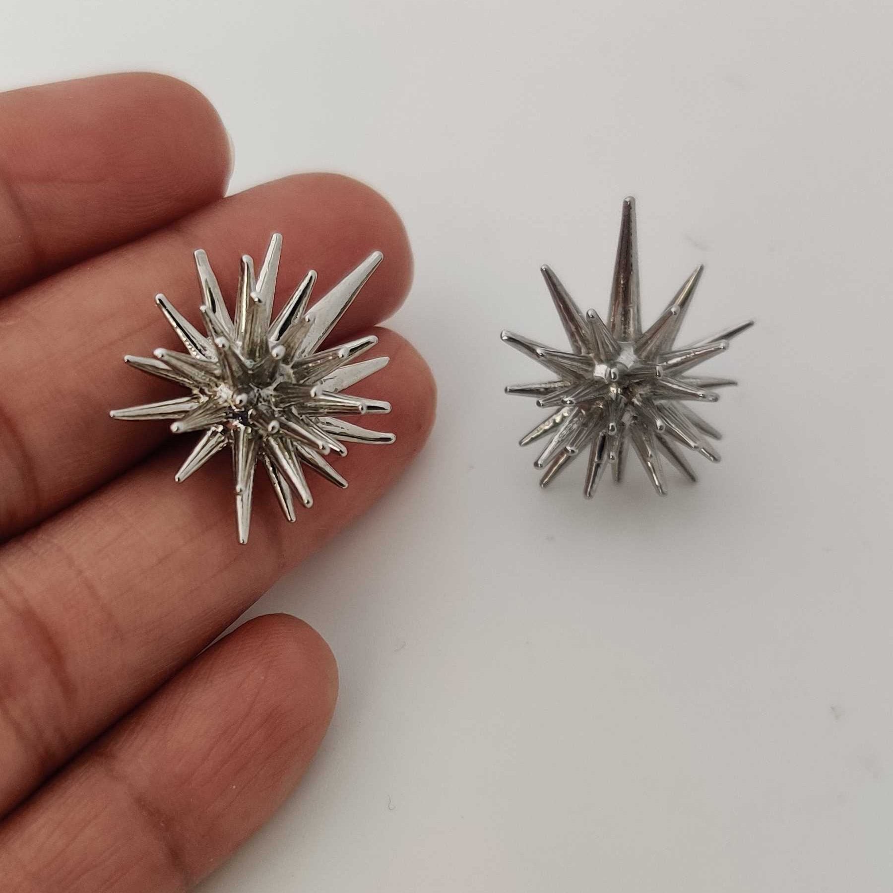 Description: These silver spike earrings have a bold, edgy design that combines sleek silver with a sharp, elongated shape. The earring features multiple spikes adding movement and a modern, minimalist aesthetic. Made from polished silver, the spike’s surface catches the light, adding a touch of metallic shine that enhances it's striking silhouette.