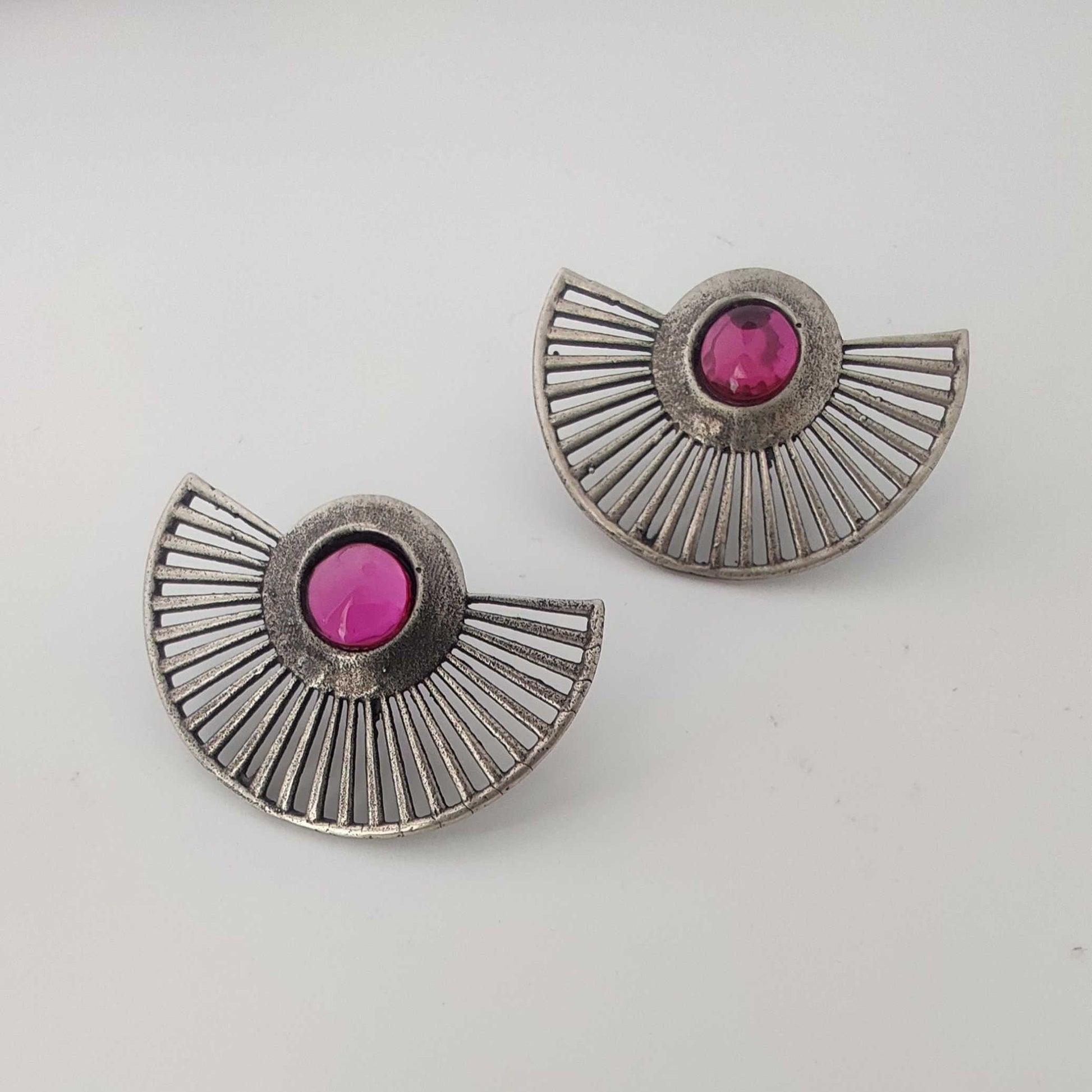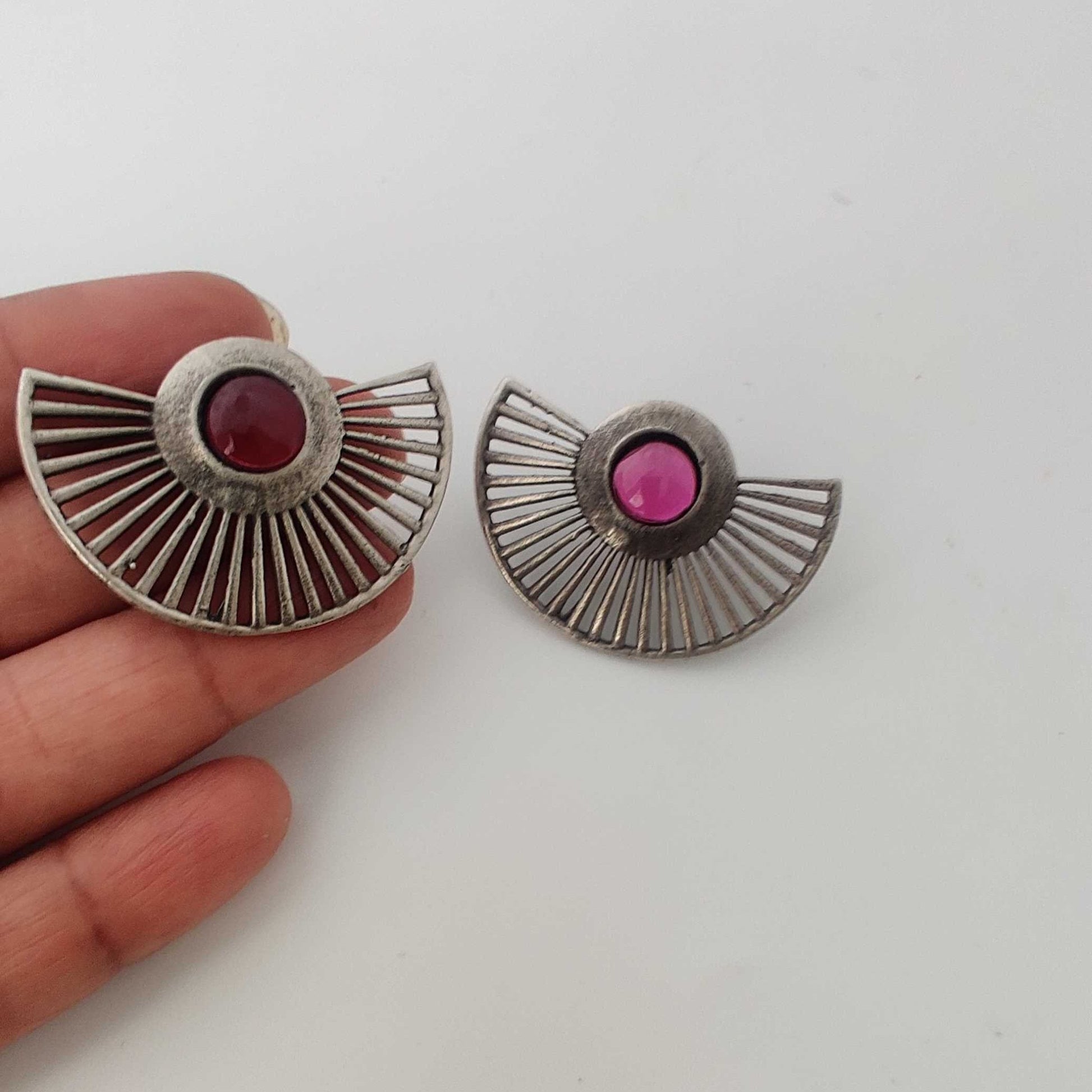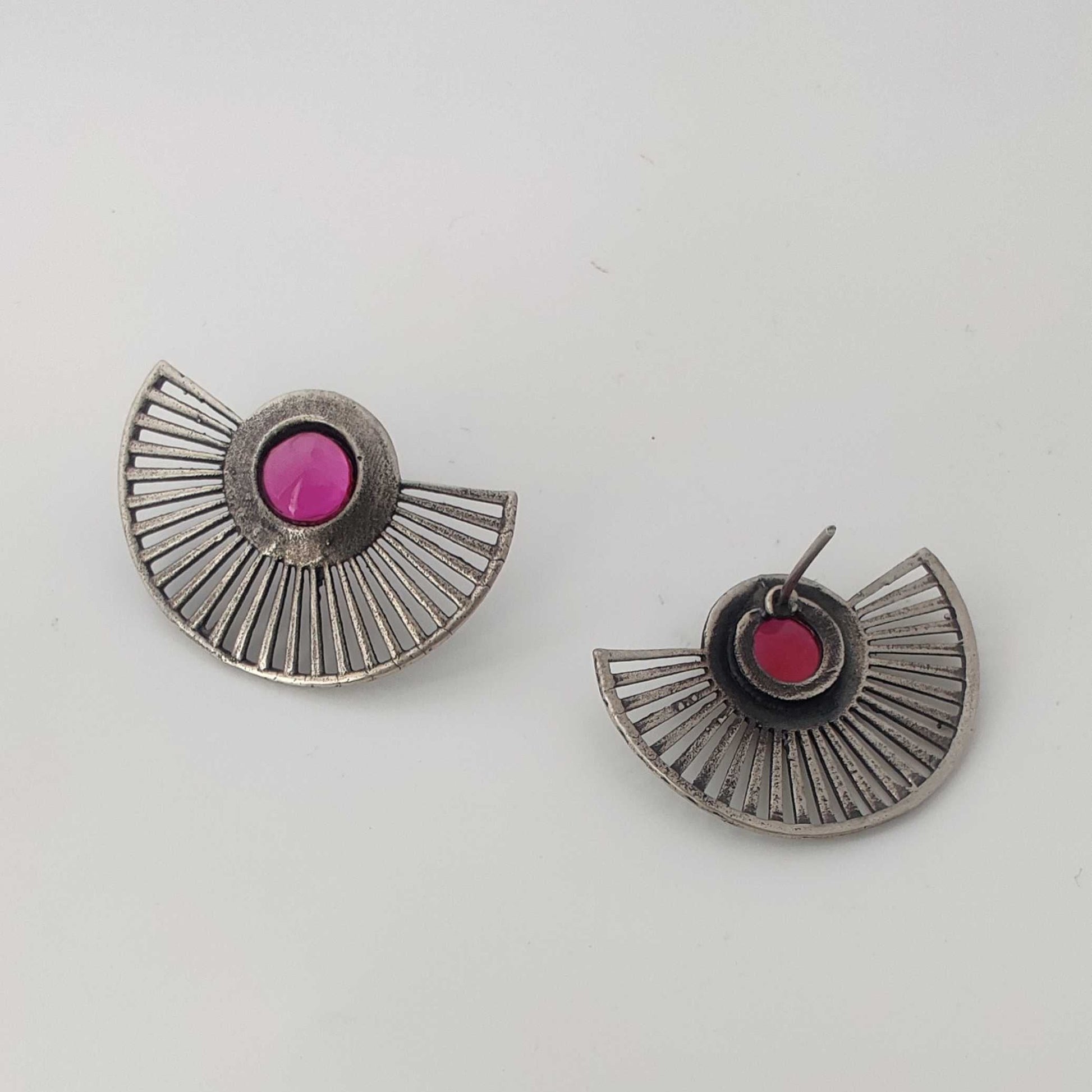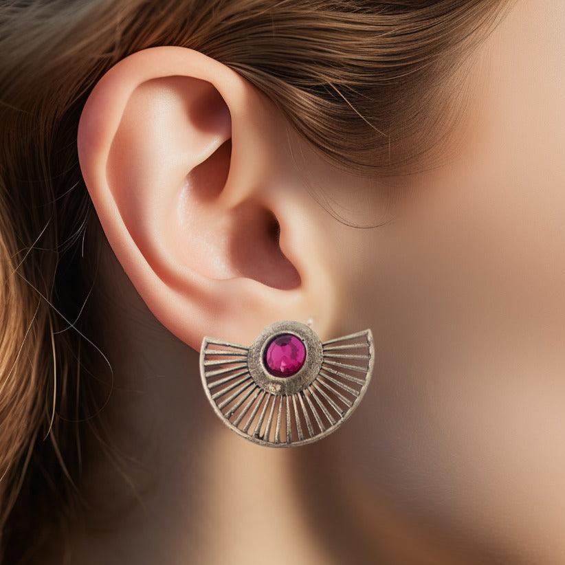 Description: These striking fan earrings feature a bold and vibrant ruby at the center, radiating elegance and sophistication.