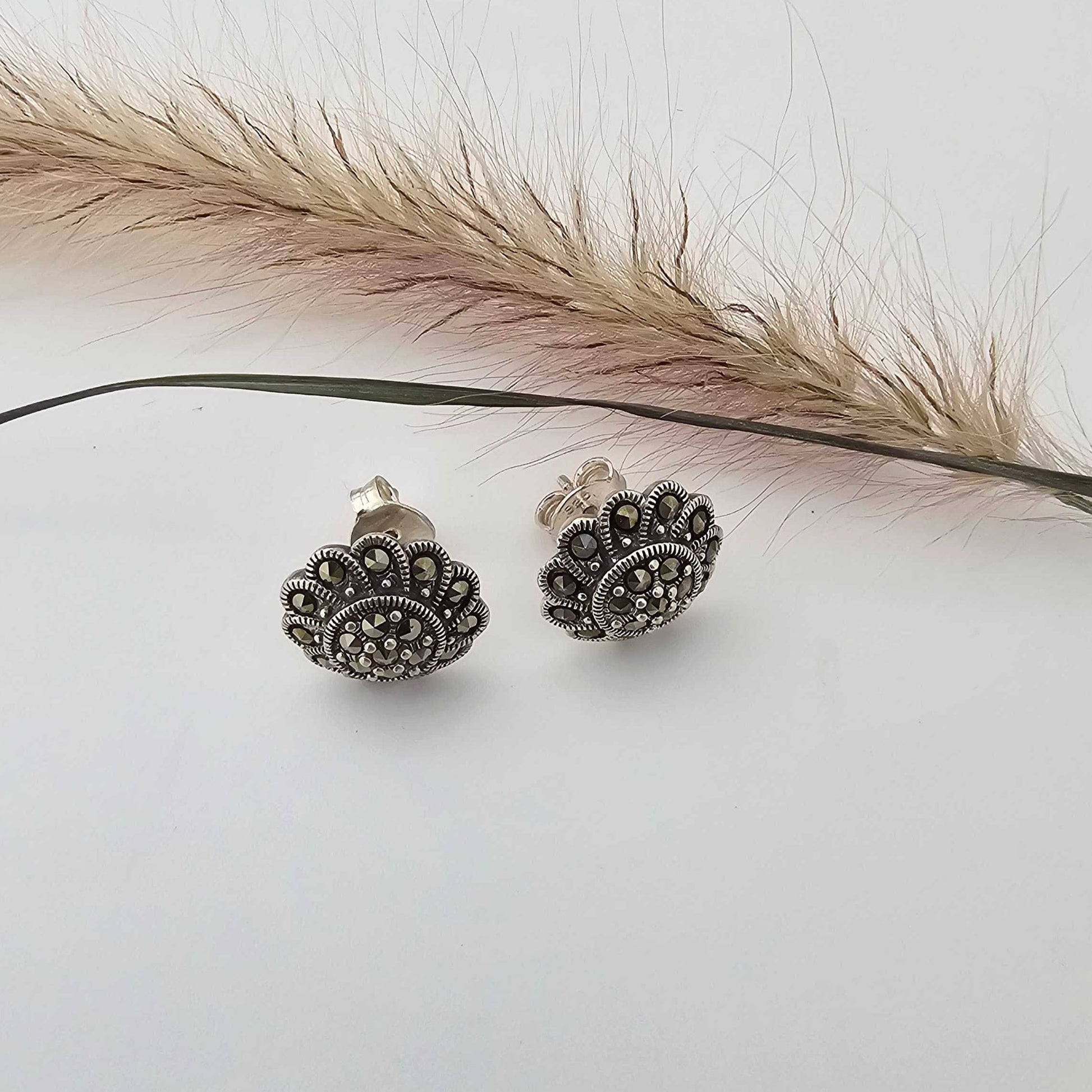 Description: These Contemporary International Swissmarka Design Stud Earrings feature a sleek and modern pattern inspired by traditional motifs.